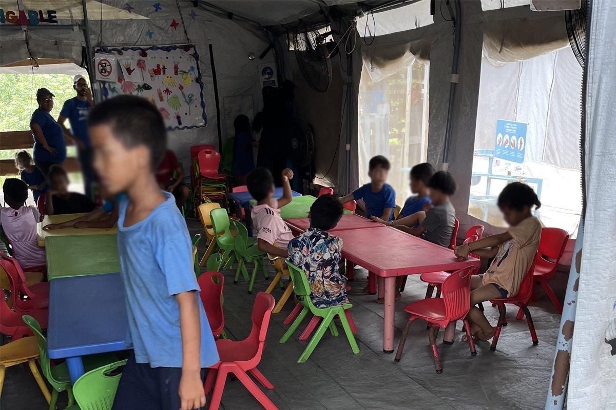 Makeshift schools return a bit of normalcy to the many children and families on this journey. One in five migrants along this route are children, and many travel without their parents.