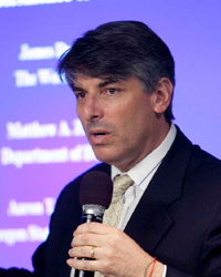 Wolf and his colleagues, Jim Duncan of the World Bank and Matt Zentner of the U.S. Department of Defense, discussed their efforts to map basins at risk for future tensions over water, as identified in their coauthored World Bank report, “Mapping the Resilience of International River Basins to Future Climate Change-Induced Water Variability.”